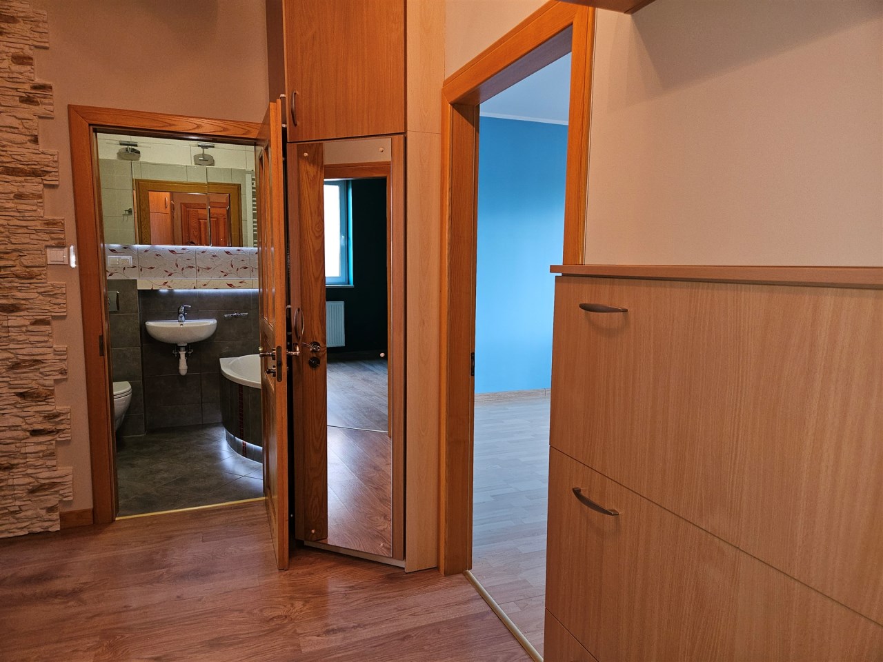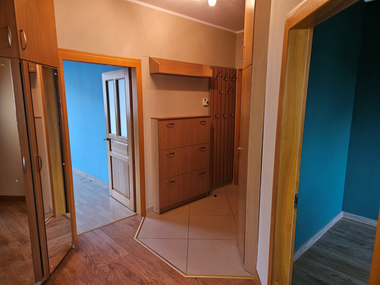 W przedpokoju dwie szafy w zabudowie.
